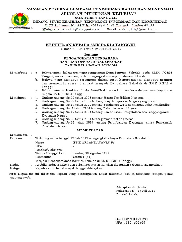 Contoh Sk Pengangkatan Bendahara Sekolah Docx from data03.123doks.com We did not find results for: Check spelling or type a new query. Maybe you would like to learn more about one of these?